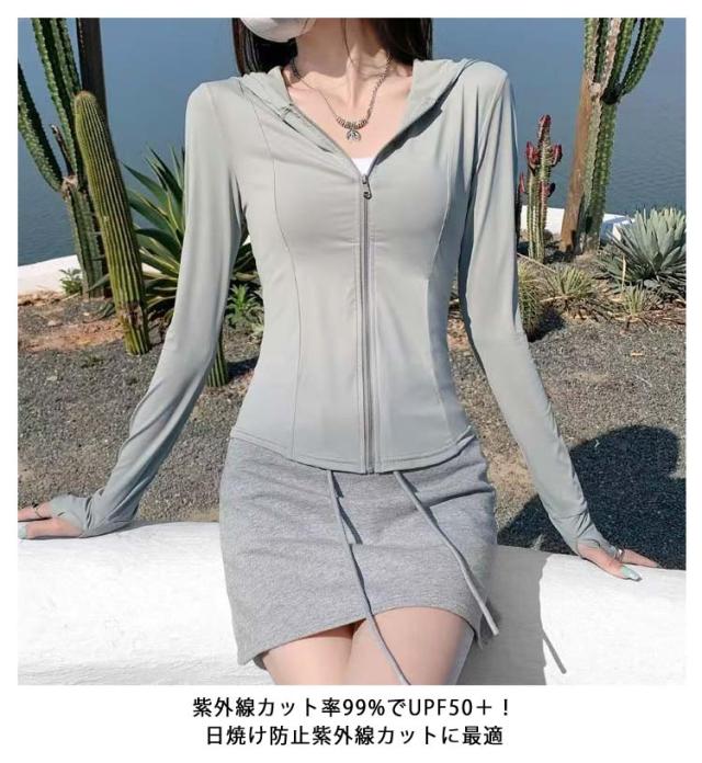 紫外線対策 UVカット パーカー 冷房対策 ラッシュガード 軽量 接触冷感 アイスシルク 羽織 日焼け対策 UPF50+ 薄手 UVカット UVカット 夏 長袖 通気性 レディース 指穴 大きいサイズ ウエストくびれ シンプル 通勤 海 アウトドア 夏服