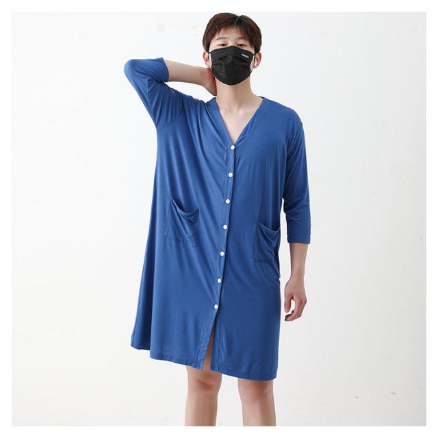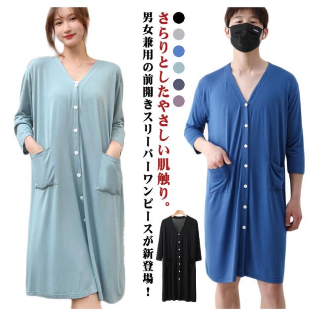 パジャマ スリーパー メンズ ワンピース 前開き ルームワンピース 湯上がりワンピース 袖あり ガウン ルームウェア ウェア ゆったり リラックス 前開き ネグリジェ 寝巻き 寝間着 ズボン パンツ なし 入院 ねまき
