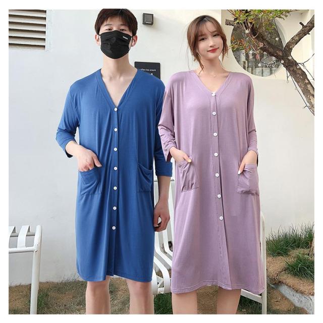 | さらりとしたやさしい肌触り。男女兼用の前開きスリーパーワンピースが新登場! ゆったり着られるスリーパーパジャマで、締め付け感ゼロの快感をぜひとも味わっていただきたい。 抜群な吸湿・放湿性で汗をかいても乾きやすく、お風呂上がりにも気持ちの良い素材です。 大きめポケット付きでヘアゴムやヘアクリップなどの小物が入れます。 すぽっとかぶるだけでストレスフリーの着心地。ズボンがないので開放感があります。 | |