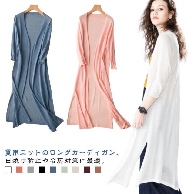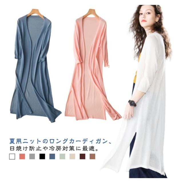 無地 冷房対策 サマーカーディガン レディース 薄手 ロングカーディガン 夏用 通勤 OL 夏服 体型カバー 長袖 シンプル 大人カジュアル 日焼け防止 UVカット 軽量 オフィス ニットカーディガン 春夏 冷房対策