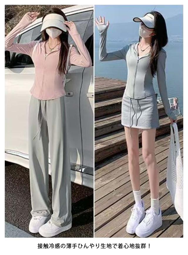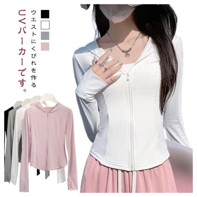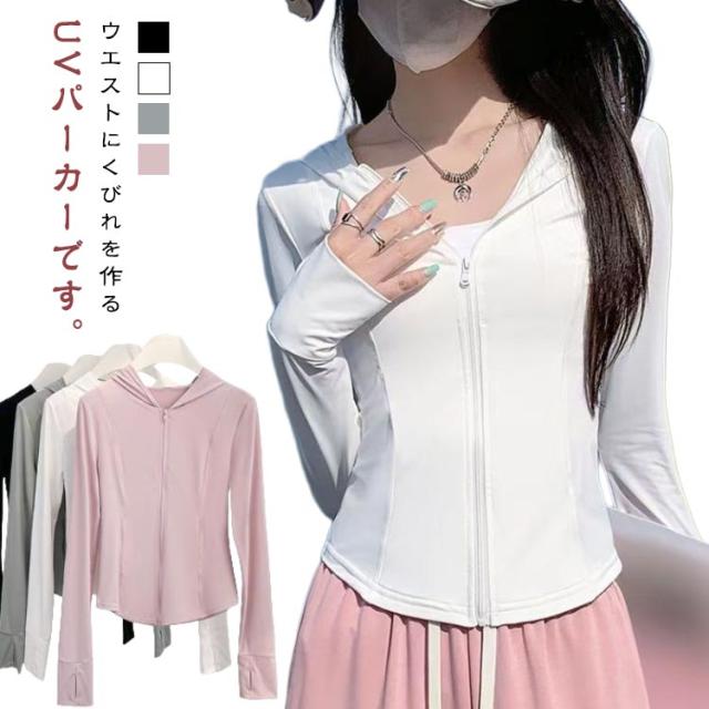 レディース 紫外線対策 UVカット UVカット 長袖 吸湿速乾 接触冷感 通気性 指穴 日焼け対策 UPF50+ 大きいサイズ 軽量 UVカット 夏 羽織 アイスシルク 薄手 冷房対策 パーカー ウエストくびれ シンプル 通勤 海 アウトドア 夏服