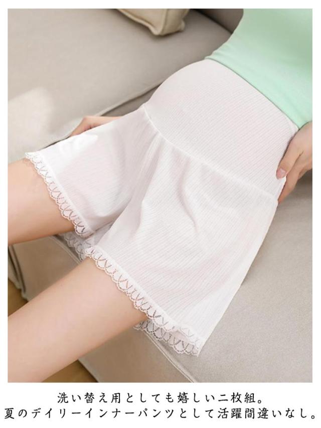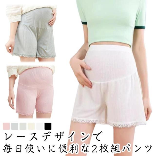 妊婦用インナー マタニティパンツ 見せパン レディース 2枚セット レース 夏用 マタニティウェア ストレッチ 薄手 ウエスト調節可能 ショートパンツ 大きいサイズ 産前産後 透け防止 インナーパンツ 伸縮性