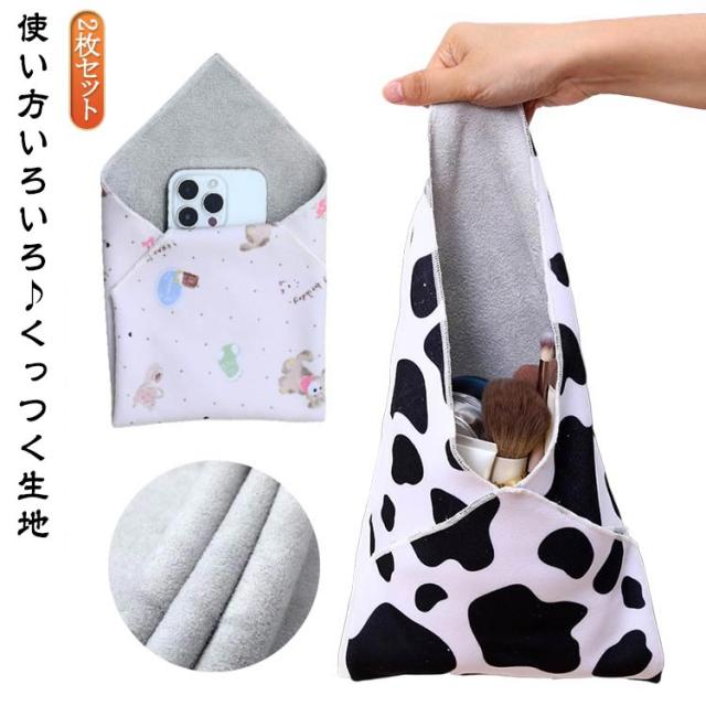 包む 正方形 くっつくタオル 吸水 55*55cm 化粧ポーチ くっつく 2枚セット タオル ランチバッグ くっつくタオル ポーチ タオル ラップクロス クロス バンダナ 小物入れ マジッククロス 風呂敷 42*42cm 35*35cm 乳牛柄 犬柄