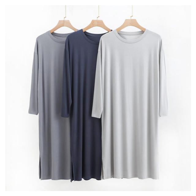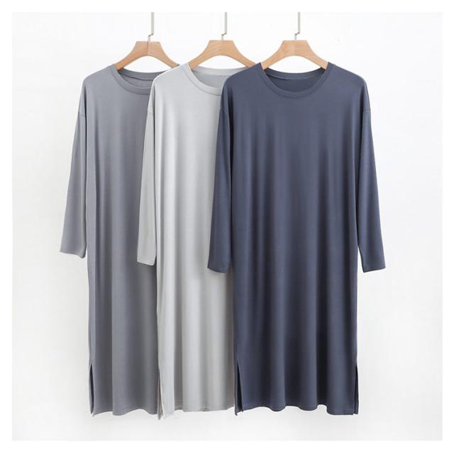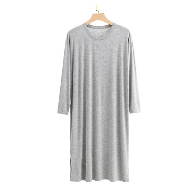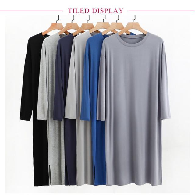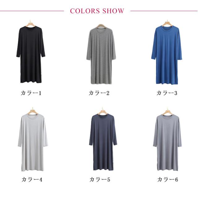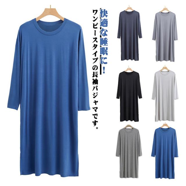 寝巻き ロングパジャマ ナイト メンズ モダール 長袖 ラウンドネック ワンピース スリーパー メンズ 男 ロングtシャツ 丸首 寝巻き ルームウェア ゆったり 部屋着 無地 大きいサイズ ワンピース 部屋着 ネグリジェ