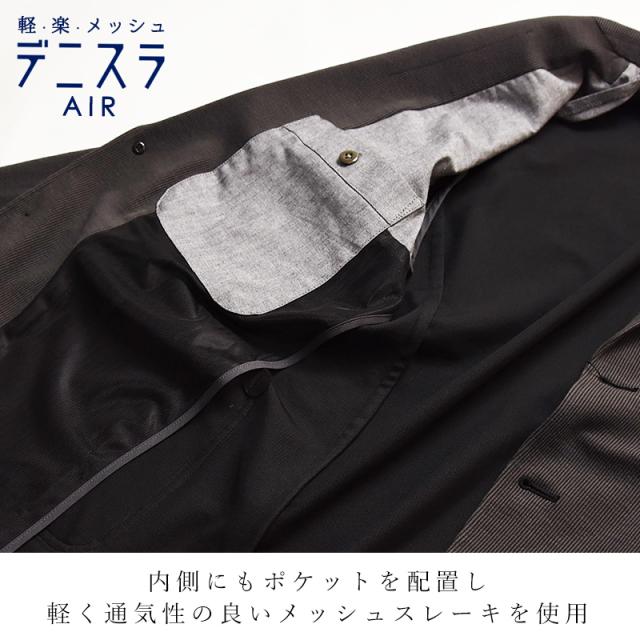超軽量、さくっと羽織れるデニスラエアーテーラードジャケット。非常に軽く、ジャケットなのに羽織り感覚で着られる高機能ジャケット。風を通し、シワになりにくい超軽量なメッシュニット素材を使用。非常に軽く、良く伸びるのが特徴です。便利な隠しファスナー付き貴重品ポケット、内側のメッシュ裏地は抗菌機能と、機能性にも優れたアイテムです。シルエットは、体型を選ばないすっきりフィット。サイズによってベースパターンを変更し、それぞれのサイズによって最適なフィット感を追求しています。休日のゴルフや出張にも最適な一枚です。