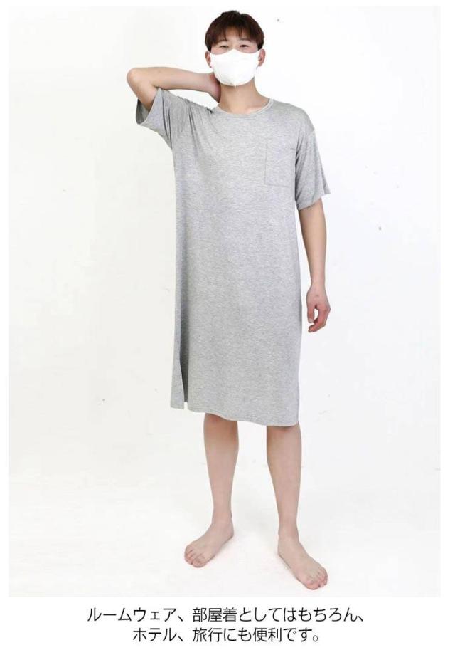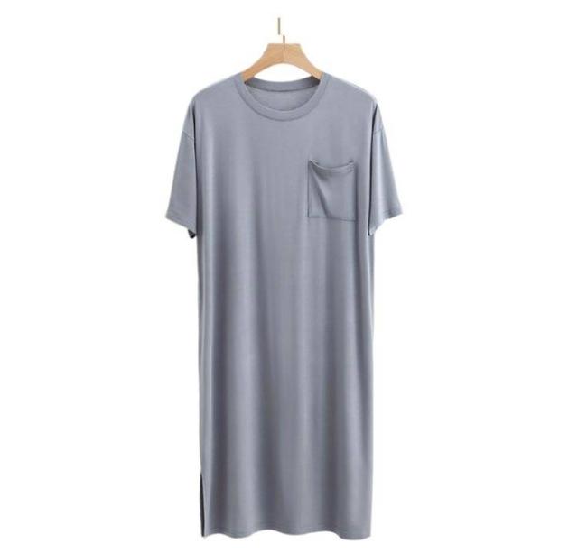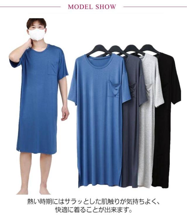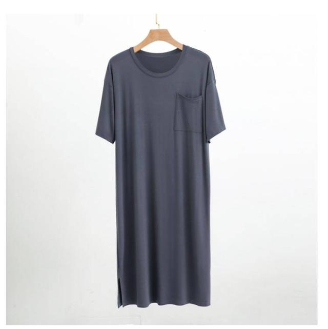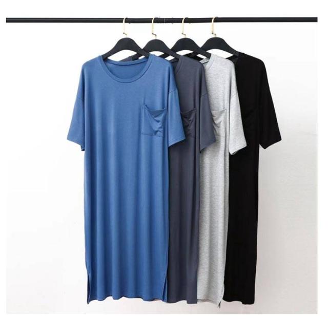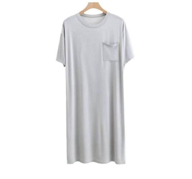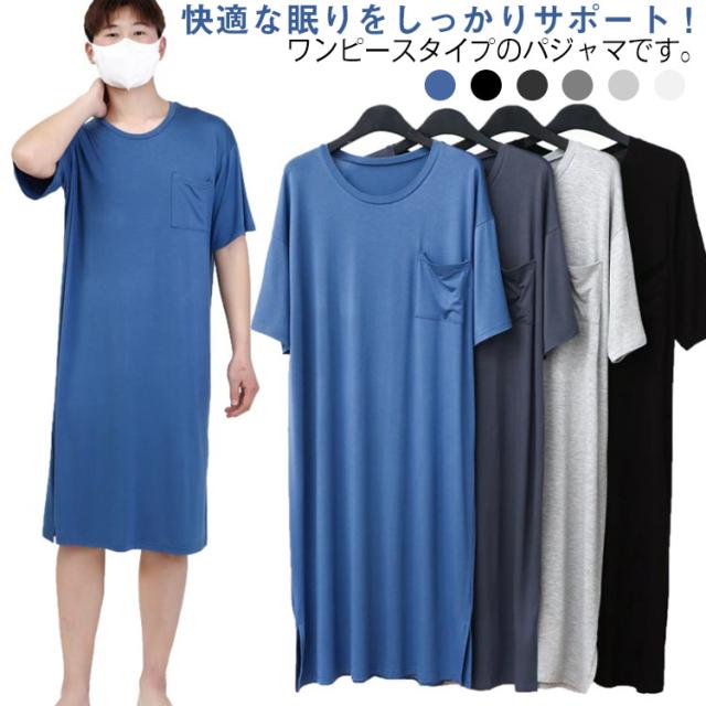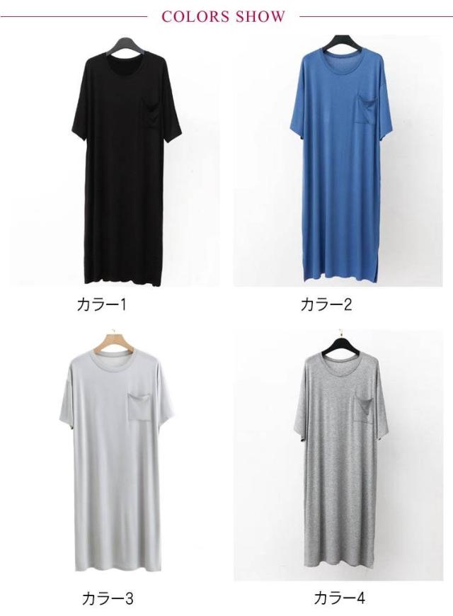 ネグリジェ モダール リラックスウエア 胸ポケット付き スリーパーパジャマワンピース 半袖 ルームウェア クルーネック パジャマ 夏用 スリーパーパジャマワンピース モダールパジャマ メンズ ワンピース 無地 柔らかい 寝巻き 部屋着