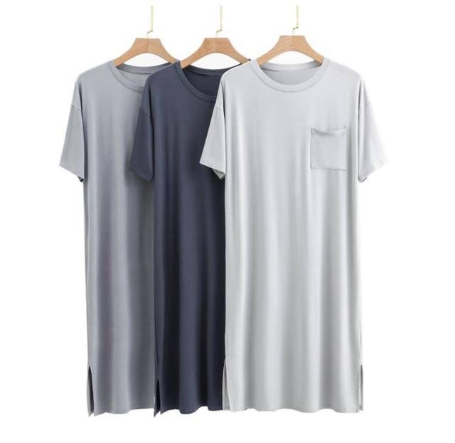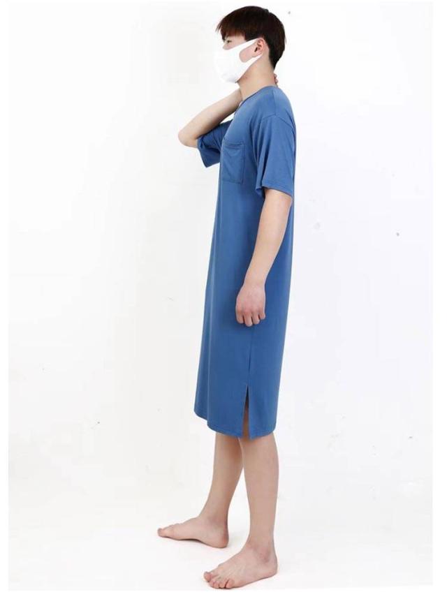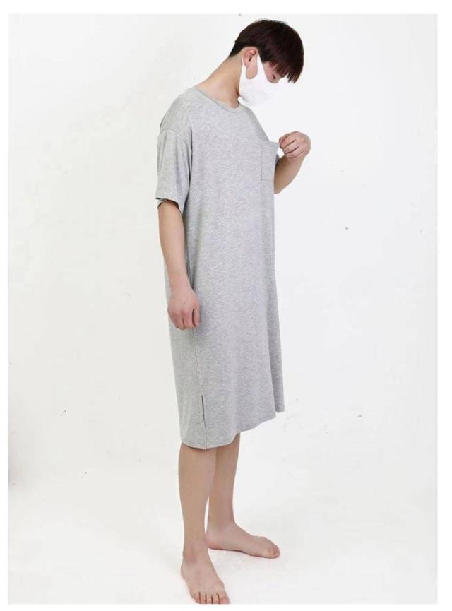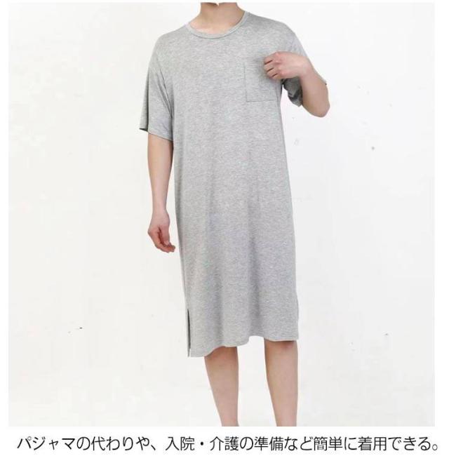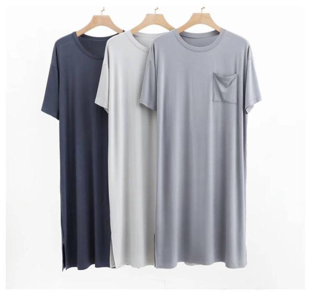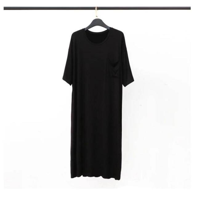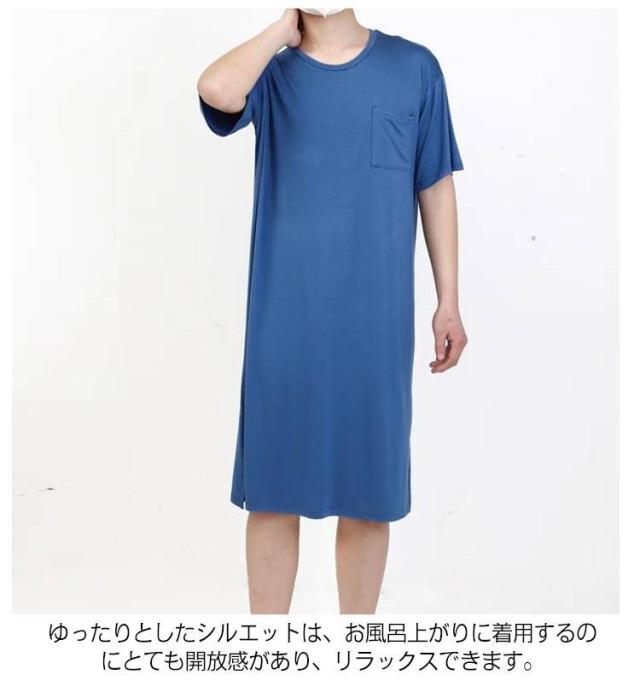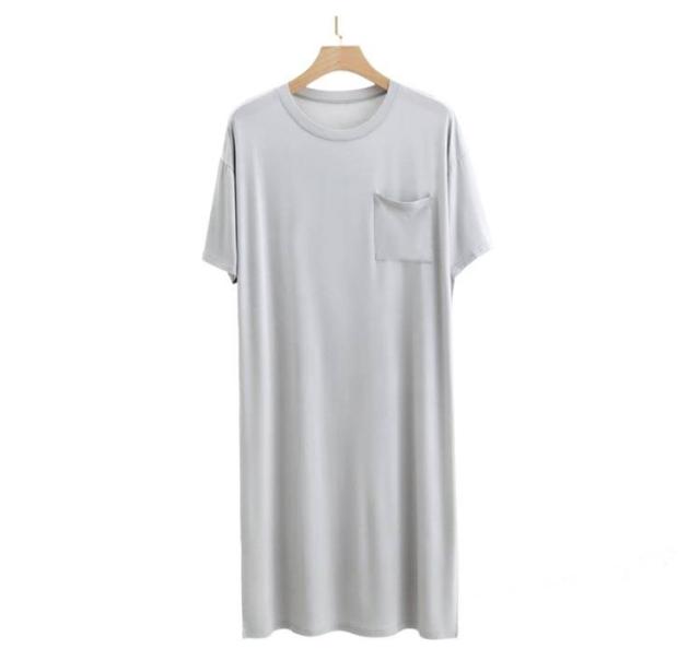ネグリジェ モダール リラックスウエア 胸ポケット付き スリーパーパジャマワンピース 半袖 ルームウェア クルーネック パジャマ 夏用 スリーパーパジャマワンピース モダールパジャマ メンズ ワンピース 無地 柔らかい 寝巻き 部屋着