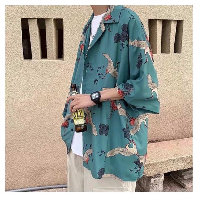 | M-3XL! 春夏の鶴柄シャツ。 派手すぎないプリント総柄itemで着るだけでおしゃれ感抜群。 | |