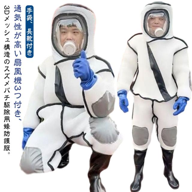 スズメバチ駆除用蜂防護服 スズメバチ駆除用蜂防護服 手袋 扇風機3つ付き 通気性高い 蜂の巣 蜂駆除用 ツマアカスズメバチ 付き 万全防護服 蜂防護服 ファン付き スズメ蜂 防護服 長靴 3Dメッシュ スズメバチ アシナガバチ ミツバチ 防護服