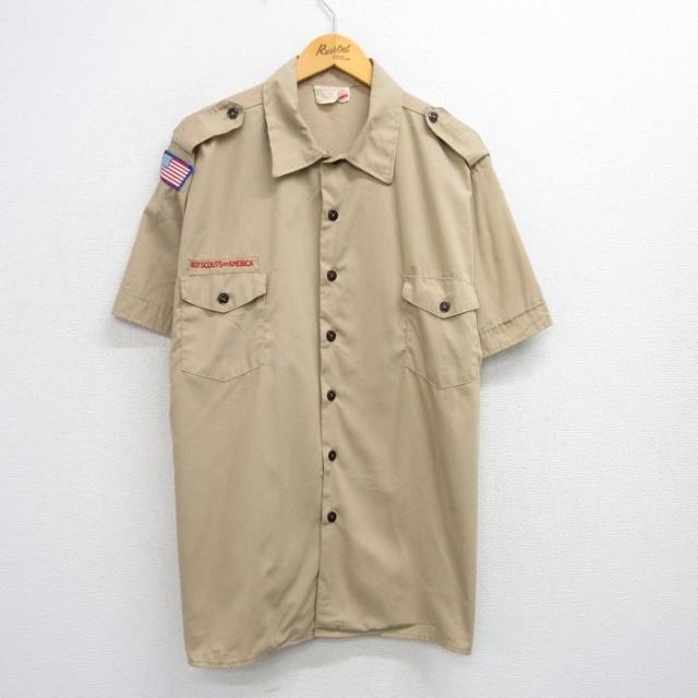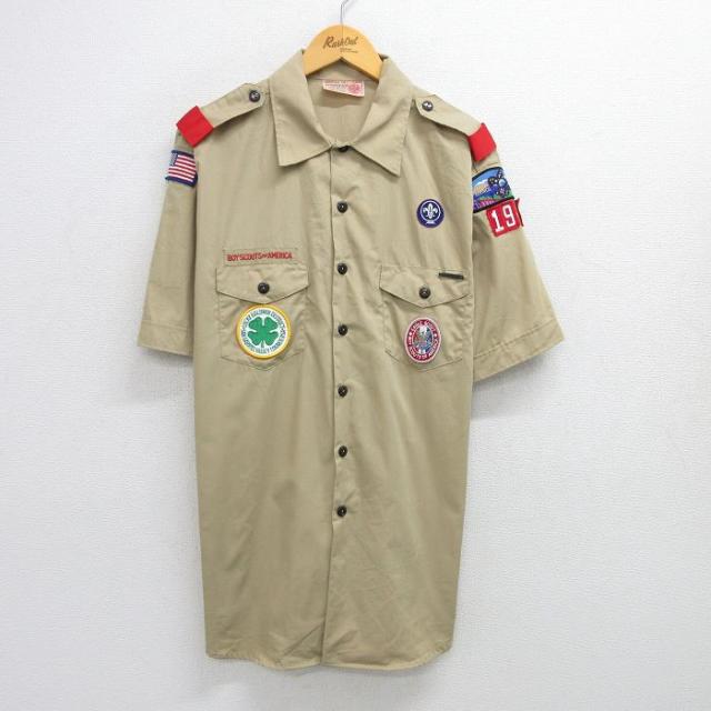 古着 半袖 ボーイスカウト シャツ メンズ 90年代 90s USA製 ベージュ カーキ XLサイズ 中古 トップス 中古 古着