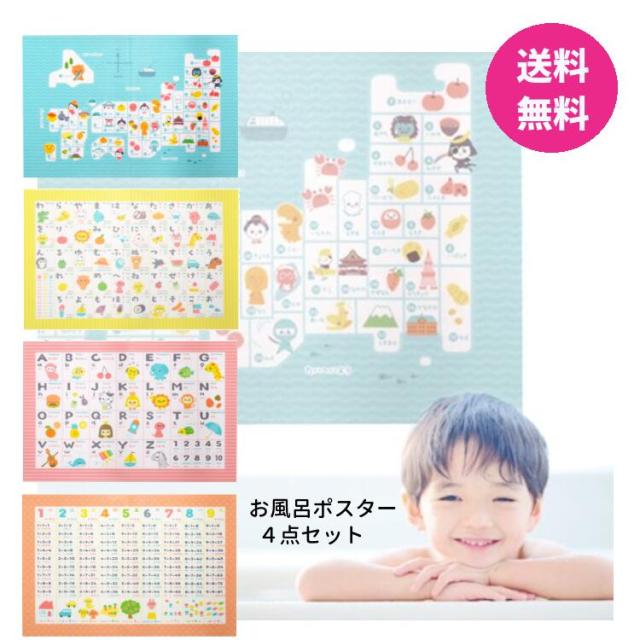 おふろポスター 4点セット お風呂ポスター 日本地図 都道府県 九九表 九九 掛け算 かけ算 あいうえお表 ひらがな あいうえお 50音 カタカナ