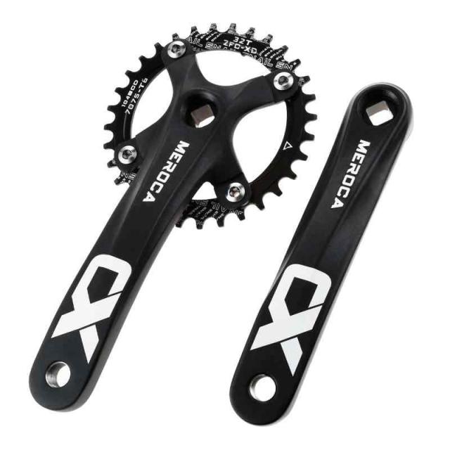 自転車クランク 自転車クランクセット スクエアテーパー BCD104mm 自転車クランクアームセットPETCHOR クランクシングル 170mm 四角穴 チェーンリングとボルト付きMTB BMXロードバイク用 マウンテンバイク マウンテンバイククランクセット アルミ 超軽量 自転車クランクアームブラック クランクセット シングルスピード (32T)