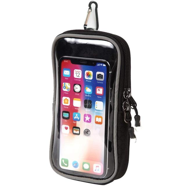 Shoebill アウトドアポーチ スマホポーチ リュック取り付け カラビナ付き リュック 登山 防水 入れたまま操作 (ブラック)