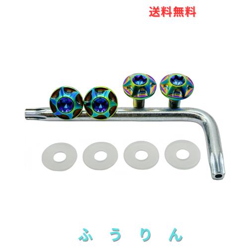 Kuroobaa 車用 ナンバープレートボルト ナンバーフレーム チタン製 盗難防止ネジ M6 4本セット (虹色)