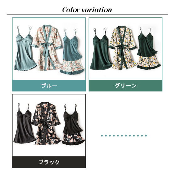 ガウン付 ルームウェア 4点セットサテ
