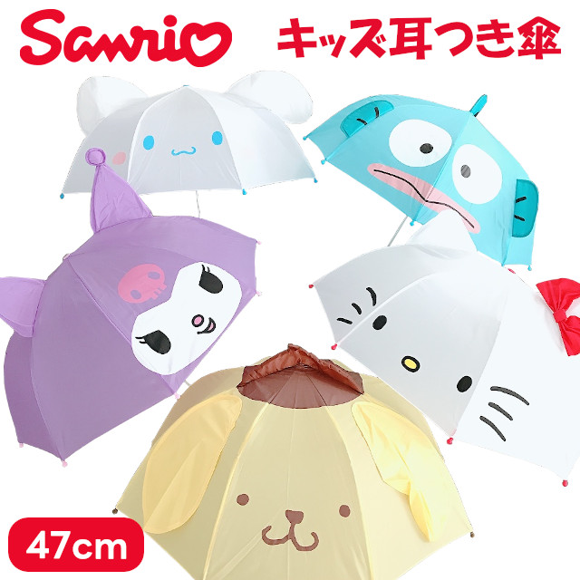 耳付き傘 47cm サンリオ ハローキティ クロミ ハンギョドン シナモロール ポムポムプリン 19336 19366 19367 19369 19370【LIG 子供 キッズ 傘 雨傘 子供用 男の子 女の子 雨具 幼稚園 保育園 レイングッズ レインウェア】