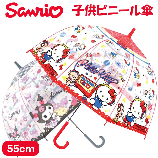 子供ビニール傘 55cm サンリオ ハローキティ クロミ 32513 32514【LIG 子供 キッズ 傘 雨傘 子供用 男の子 女の子 雨具 幼稚園 保育園 レイングッズ レインウェア】