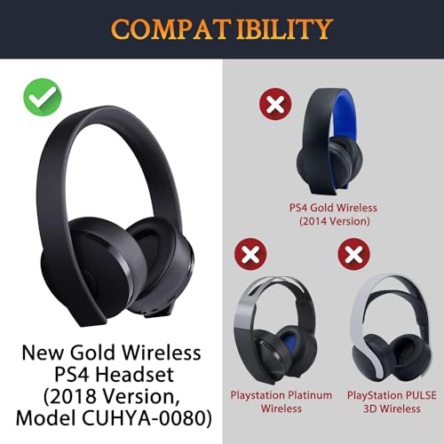 Sony Gold Wireless Playstation PS4 ゲーミングヘッドセットに対応 イヤーパッド イヤークッション 交換用 互換品 代替品 2018年版 モデル CUHJ 15007 / CUHYA 0080 (黒)