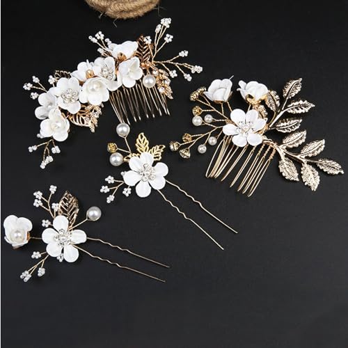 髪飾り ヘアアクセサリー 4点セット 花 キラキラ おしゃれ 造花飾り 飾り 浴衣 和装髪飾り パール フラワー コーム Uピン ヘアピン ヘア飾り ヘアアクセサリー ヘアコーム 成人式 七五三 披露宴 パーティー 入学式 卒業式 和装 ホワイト