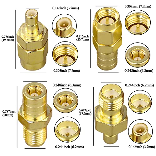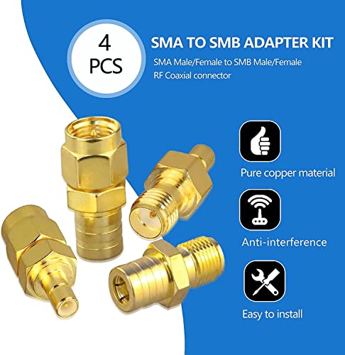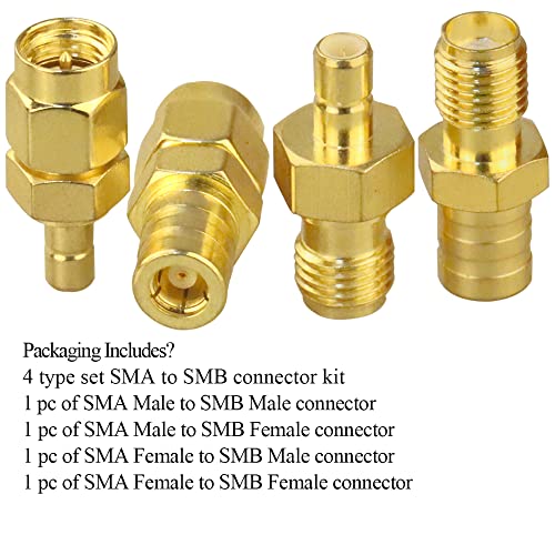 パッケージ内容: 4 個 (SMA オス - SMB オス コネクタ 1 個、SMA オス - SMB メス コネクタ 1 個、SMA メス - SMB オス コネクタ 1 個、SMA メス - SMB メス コネクタ 1 個)