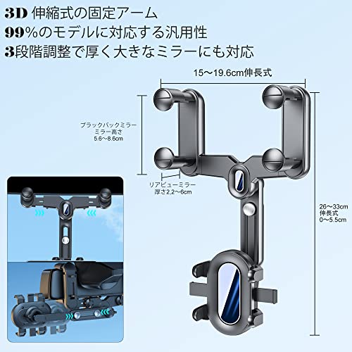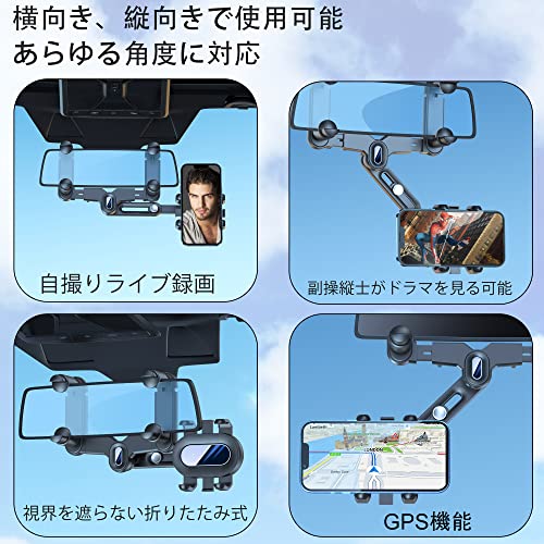 スマホホルダー 車載 バックミラー 携帯電話ホルダー バックミラーアクセサリー 360°回転可能 多機能 360°伸縮式 車載スマホホルダー 万能ホルダー付き 様式2
