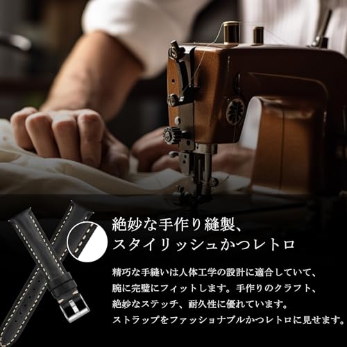 [高品質の材料] この革時計ベルトはオイルワックスの皮革で作られていて、柔らかくて弾力性があり、快適です、質感はもちろん、ファッショナブルで着心地もたっぷり。上質な革は時計バンドに優れた外観とセンスを与え、腕時計に素晴らしい外観をもたらします。[注: レザーストラップを水に浸さないでください。水との接触を避けることをお勧めします。濡れた後はできるだけ早く柔らかい布で乾かしてください。時計バンドは最初に使用したときに少し硬い場