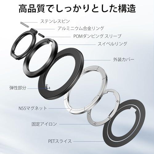 スマホリング 両面マグネット MagSafe リング マグセーフ リング マグネット バンカーリング 超強力 薄型 角度調節可能 簡単着脱 iPhone 16 Pro Max 15 14 13 12 などに対応 アンドロイド 全機種対応 2枚メタルリング付