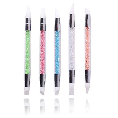 ネイルアートブラシ ネイル筆 シリコン筆 新型 画筆 両端ヘッド レジン道具 ペイントブラシ 工具 ジェルネイル用ブラシ 透明+カラー [5本セット]