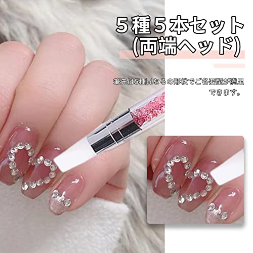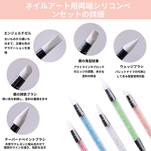 ネイルアートブラシ ネイル筆 シリコン筆 新型 画筆 両端ヘッド レジン道具 ペイントブラシ 工具 ジェルネイル用ブラシ 透明+カラー [5本セット] 送料無料