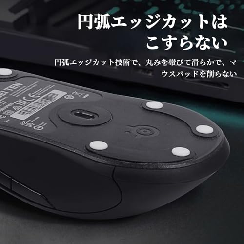 【ラウンドエッジ加工】マウスドットスケートは独自のカーブデザインにより、マウスパッドに引っかかりにくく、快適でスムーズな使用感を実現します。 あらゆるマウスパッドに対応し、より正確な操作が可能です。