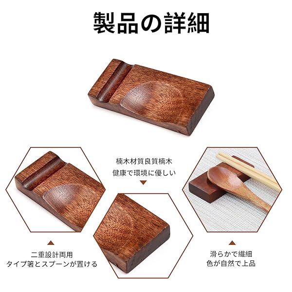 【上質な素材】この箸置きは良質な楠材で作られており、滑らかな感触で安全に使用されています。箸、フォーク、スプーン、ナイフ、その他の食器を置くのに適しています。