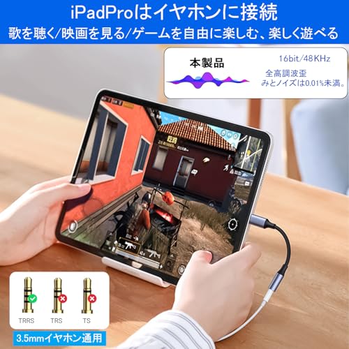 【マイク入力に対応/Hi-Fi音質】このUSB C - ヘッドセットアダプターは高性能DACデコーダーチップを内蔵し、全高調波歪みとノイズは0.01%未満です。高精細オーディオ、強力なノイズリダクションを提供し、より忠実度の高いサウンドを得ることができます。 マイク付きヘッドセットを使用して通話できます。ゲームやナビゲーション用に、ヘッドセットはオーディオとマイクの両方の機能をサポートし、TRRS 3.5 mm マイクが付属しています。