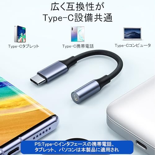 【Type-C to 3.5mm変換アダプター】本製品USB C イヤホンジャック変換アダプターには音声の損失を抑える高品質音声DACチップを採用、最大16bit/48KHzの高音質出力を提供して音声のロスを最小限に抑えながら、高音質で音楽を楽しめます。USB Type-Cポートから3.5mm3極/4極プラグへ変換できるオーディオ変換アダプター。3.5mmイヤホンジャックが付かないスマホのために設計します。面倒くさい設定は不要、挿すだけで使用できます。