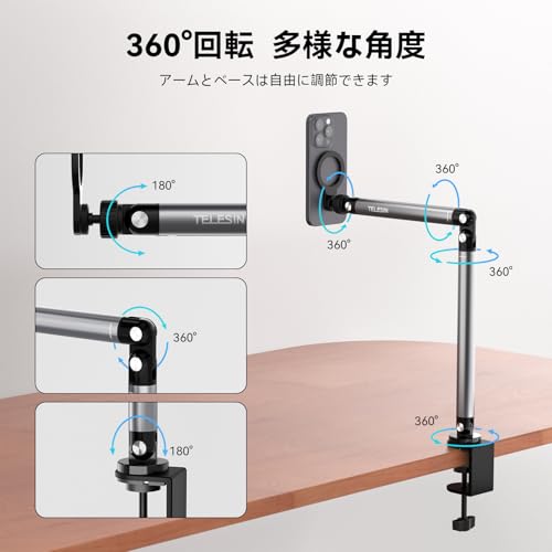 スマホスタンド 寝ながら タブレットスタンド スマホアーム ベッド 携帯 固定 360°回転 卓上 フレキシブルアーム 俯瞰撮影 / 手元撮影 / ライブ配信 / 動画 / スマホ撮影スタンド 折り畳み 安定性 落下防止 iPhone16 / 15 / 14 / 13 / 12 / iPad / Android対応