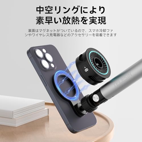 【強力なマグネット式アームスタンド&落ちにくい】2024年には業界初中空マグネットリングを搭載した スマホスタンドが登場しました。強力なMagSafe対応の磁気吸着力により、携帯電話をしっかりと安定した吸着でき、落ちにくい。通常のアームスタンドのようにクリップを開く必要がなく、マグネット式なので1秒で取付け・取外すことができます。片手で簡単に操作できます。新たにアップグレードされた中空マグネットリング設計は、スマホを長時間使用しても熱くならず、素早い放熱を実現します。