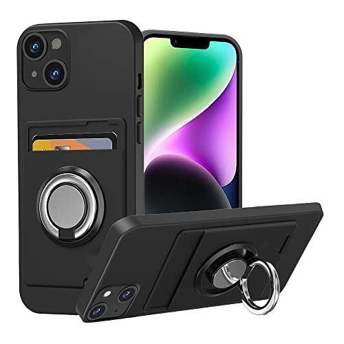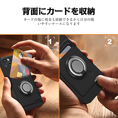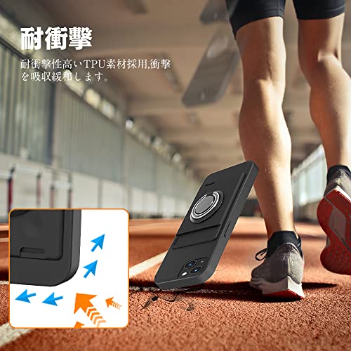 iPhone 14 / iPhone 13 ケース リング付き シリコン カード収納 アイフォン 14 / 13 ケース スタンド機能 360°回転リング 滑り止め 黒 送料無料