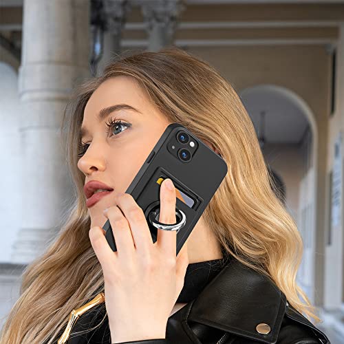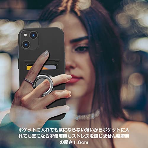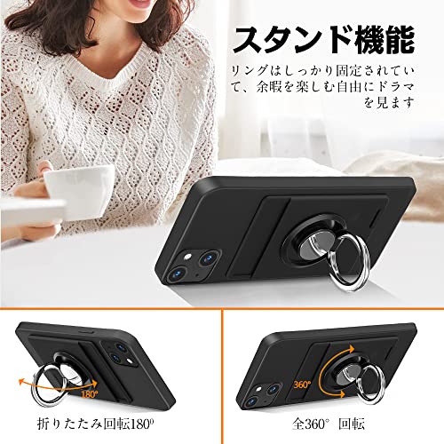 iPhone 14 / iPhone 13 ケース リング付き シリコン カード収納 アイフォン 14 / 13 ケース スタンド機能 360°回転リング 滑り止め 黒