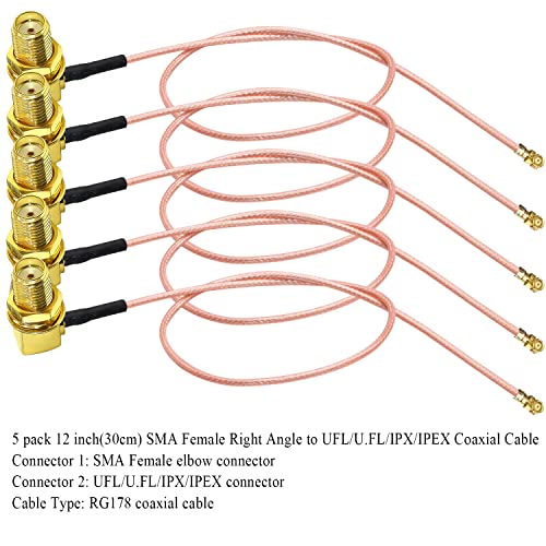 IPX MHF1 SMA 同軸ケーブル SMA メス 直角 U.FL UFL MHF1 RF 同軸 RG178 ピグテールケーブル WiFi ルーター アンテナ用 ミニ PCI SMA エルボ バルクヘッド 低損失延長ケーブル 12 インチ (30cm) 5 個