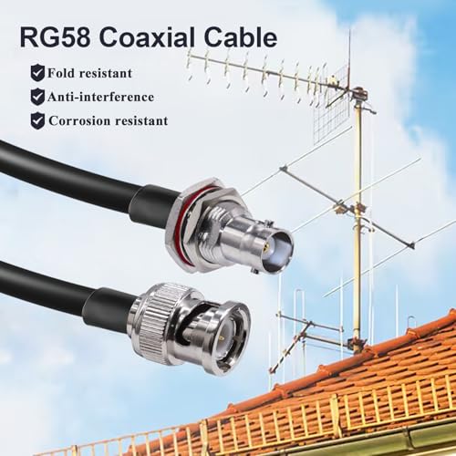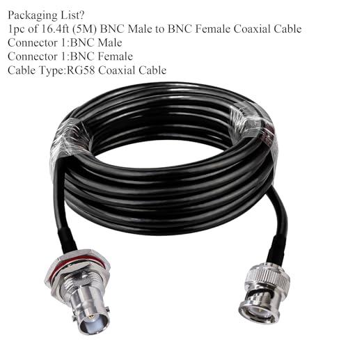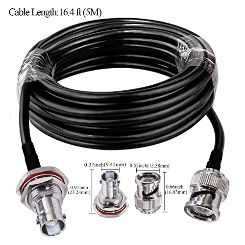 BNC ケーブル RG58 ジャンパーケーブル BNC オス BNCメス バルクヘッド 低損失 50オーム CB 無線 同軸 ケーブル 16.4フィート (5M) アマチュア 無線 アンテナセキュリティ CCTV システム用 Wifi アンテナ 延長 ケーブル