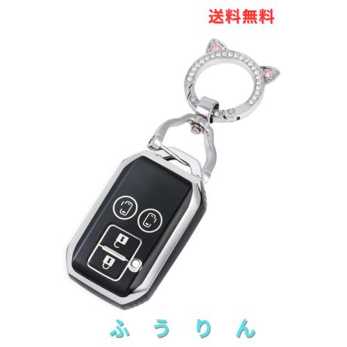 [ZANEKO] キーケース適合スズキ新型スペーシアキーカバー スペーシアカスタム ソリオ フレアワゴン スマートキーケース(可愛猫耳 黒)