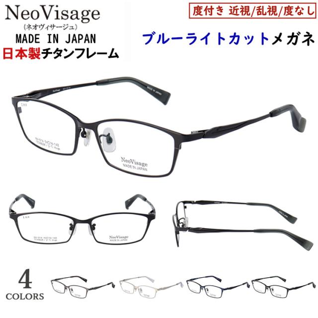 ブルーライトカット メガネ UVカット 日本製 メイドインジャパン メンズ 男性 度付きメガネ PC眼鏡 度入り 度あり 近視 乱視 度なし だて 伊達 ブランド チタンフレーム スクエア 軽量 ネオヴィサージュ NV-014 ブラック シルバー グレー ダークネイビー UV400