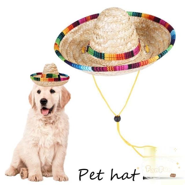 ペット用帽子 ペット用ハット 犬 ネコ ペット用品 小物 雑貨 メキシコ風 ソンブレロ 麦わら帽子 あご紐付き 無地 カラフル レインボー かわいい