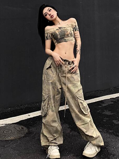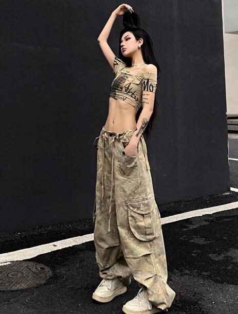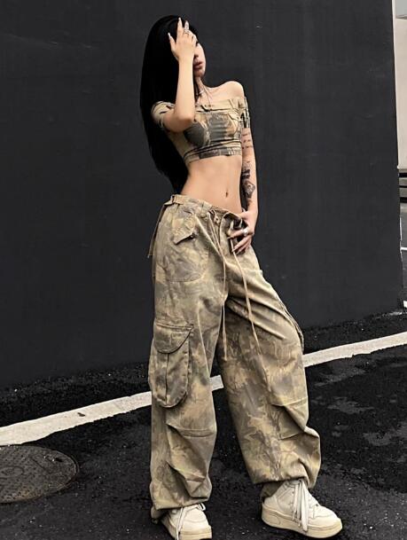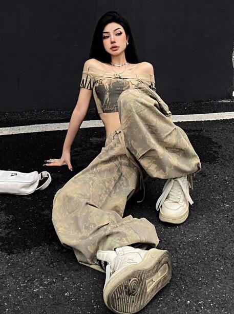迷彩カーゴパンツズボンボトムスパンツハイウエストロングジョガーパンツシンプル大きいサイズゆったりだぼだぼダンス衣装ヒップホップHIPHOPレディース メンズストリート奇抜派手