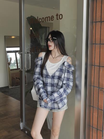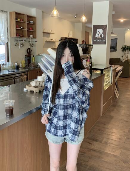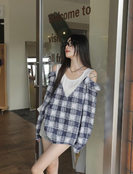 重ね着風長袖 肩出し 肌見せトップスカットソーシャツブラウスビッグ大きいサイズゆったりシンプルダンス衣装ヒップホップHIPHOPレディースガールズストリート韓国おしゃれ奇抜派手大人セクシー秋