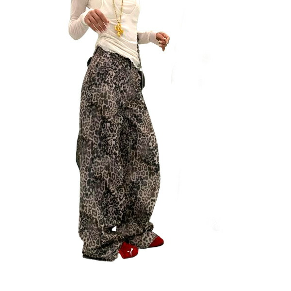 ヒョウ柄デニムズボンボトムスパンツジーンズジーパンストレートロングワイド太い太めダンス衣装ヒップホップHIPHOPレディースガールズストリート奇抜派手韓国ビッグ大きいサイズ