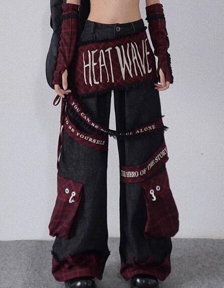 ワッペン刺繍デニムズボンボトムスパンツジーンズジーパンストレートロングシンプルダンス衣装ヒップホップHIPHOPレディースメンズガールズストリート奇抜派手韓国ビッグ大きいサイズかわいい