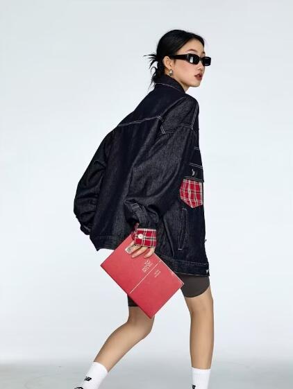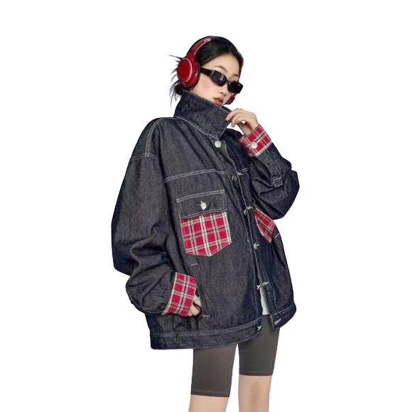 チェック柄切替ジージャンデニムジャケッ コート ジャケット 早い者勝ち レッド ブルー M L XL 2XL