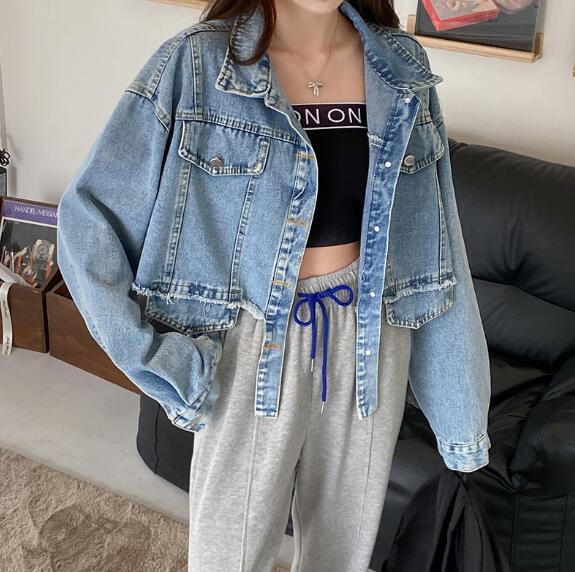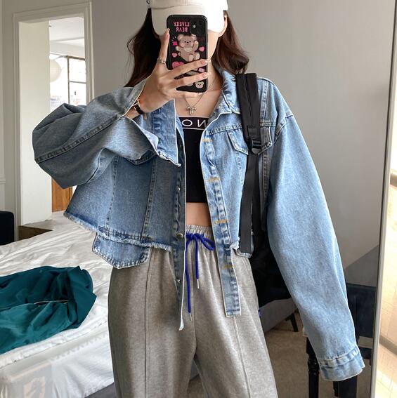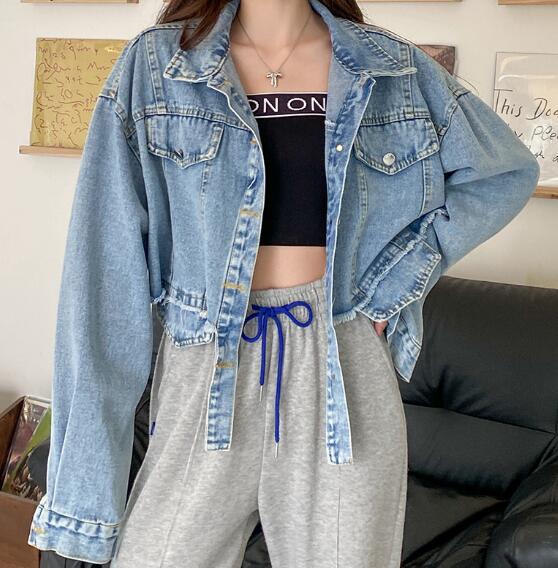 ショート丈ジージャンデニムジャケット長袖Gジャンボタンポケットビッグ大きいサイズダンス衣装ヒップホップHIPHOPレディースガールズ大人ストリートアウタージャンパー韓国