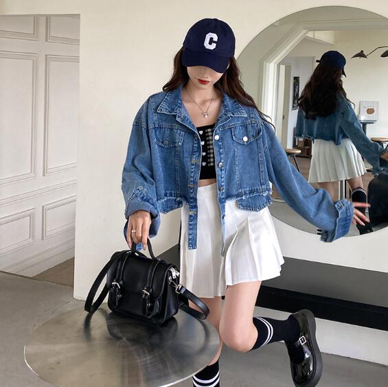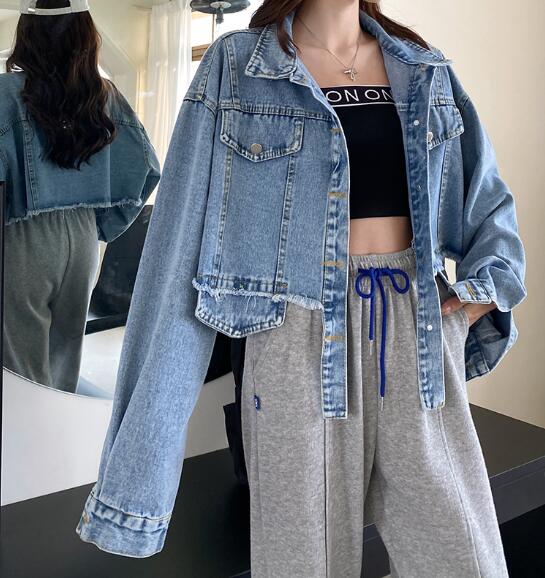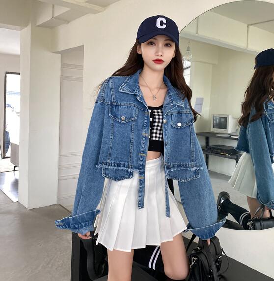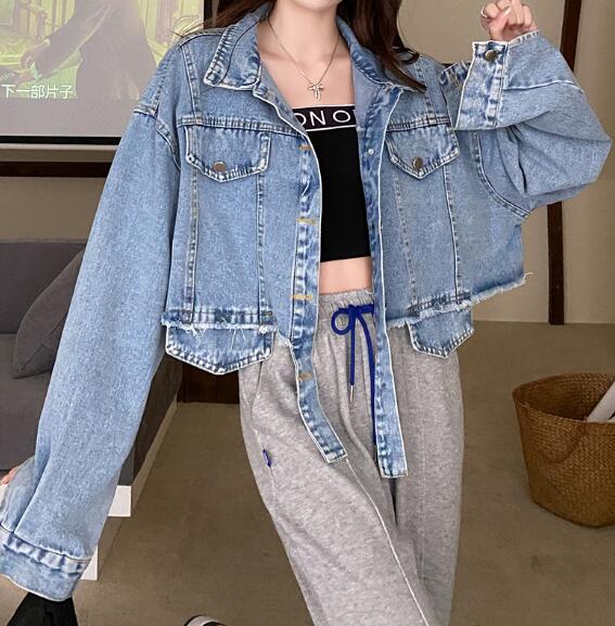ショート丈ジージャンデニムジャケット長 コート ジャケット 豊富 ライトブルー ダークブルー S M L XL