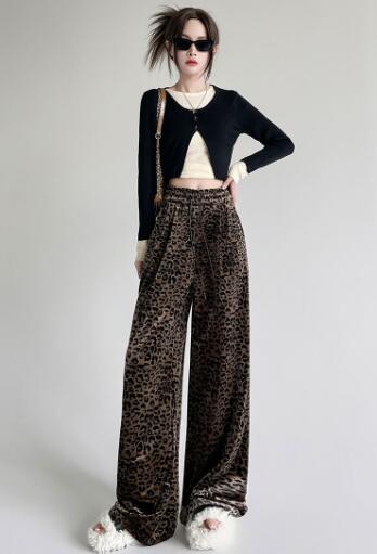 [低身長 高身長 大きいサイズ有]ヒョウ柄パンツズボンボトムス ロング大きいサイズハイウエストポケットダンス衣装ヒップホップHIPHOPレディースガールズ個性的奇抜